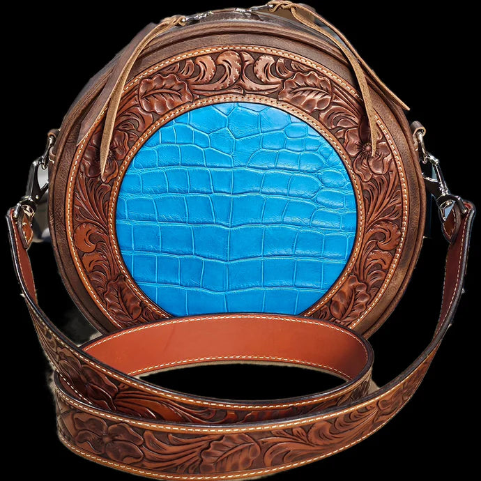Round bags are making a big comeback, and this one's got that classic Western flair built right in.