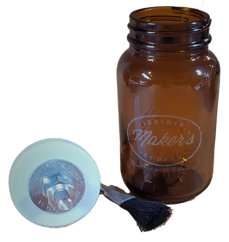 Made of amber glass with a built-in brush. This is the medium version of our popular Large Glue Jar/Pot.