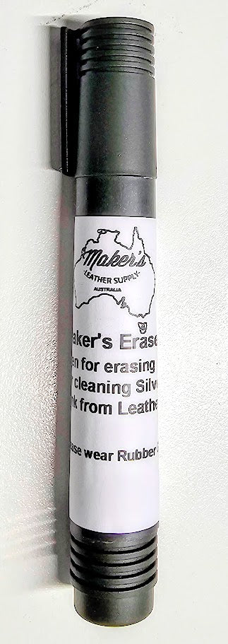 Now you can easily remove silver marking lines from your leather projects with the Maker’s Silver Eraser Pen. Designed specifically for leathercrafters, this handy tool completely erases silver pen marks without damaging the surface.